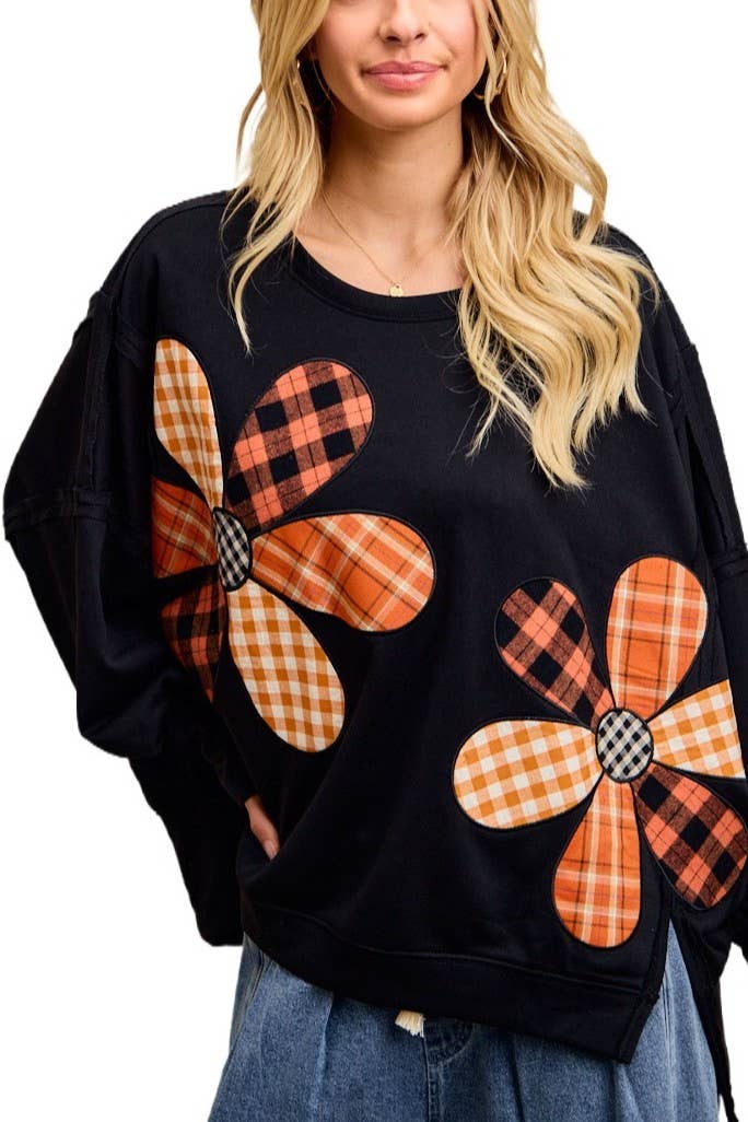 SWEAT-SHIRT À CARREAUX À MANCHES LONGUES -Tissu en tricot brossé -Épaule basse à manches longues -Coupe surdimensionnée -Ligne à col rond -Pull TAILLE PRÉEMBALLÉE S-M-L-XL (2:2:2:2) 1X-2X-3X (2:2:2)