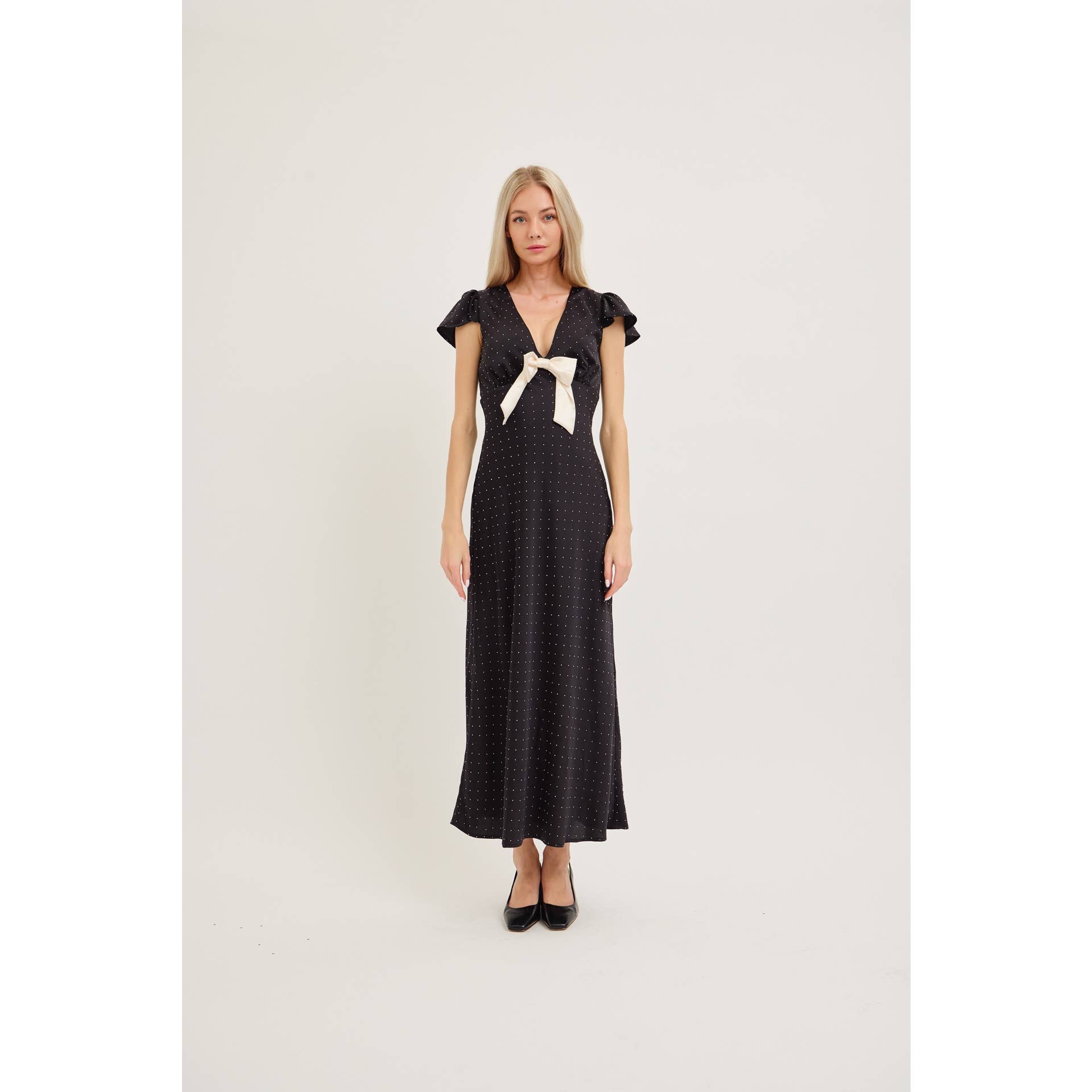 Robe midi noire style vintage avec manches cape Celestria en vente B2B