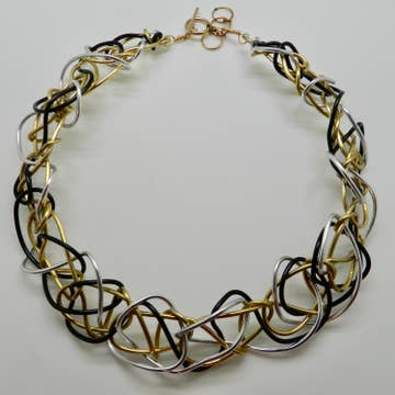 S88D - Collier long fil de piano or rose avec entrelacement