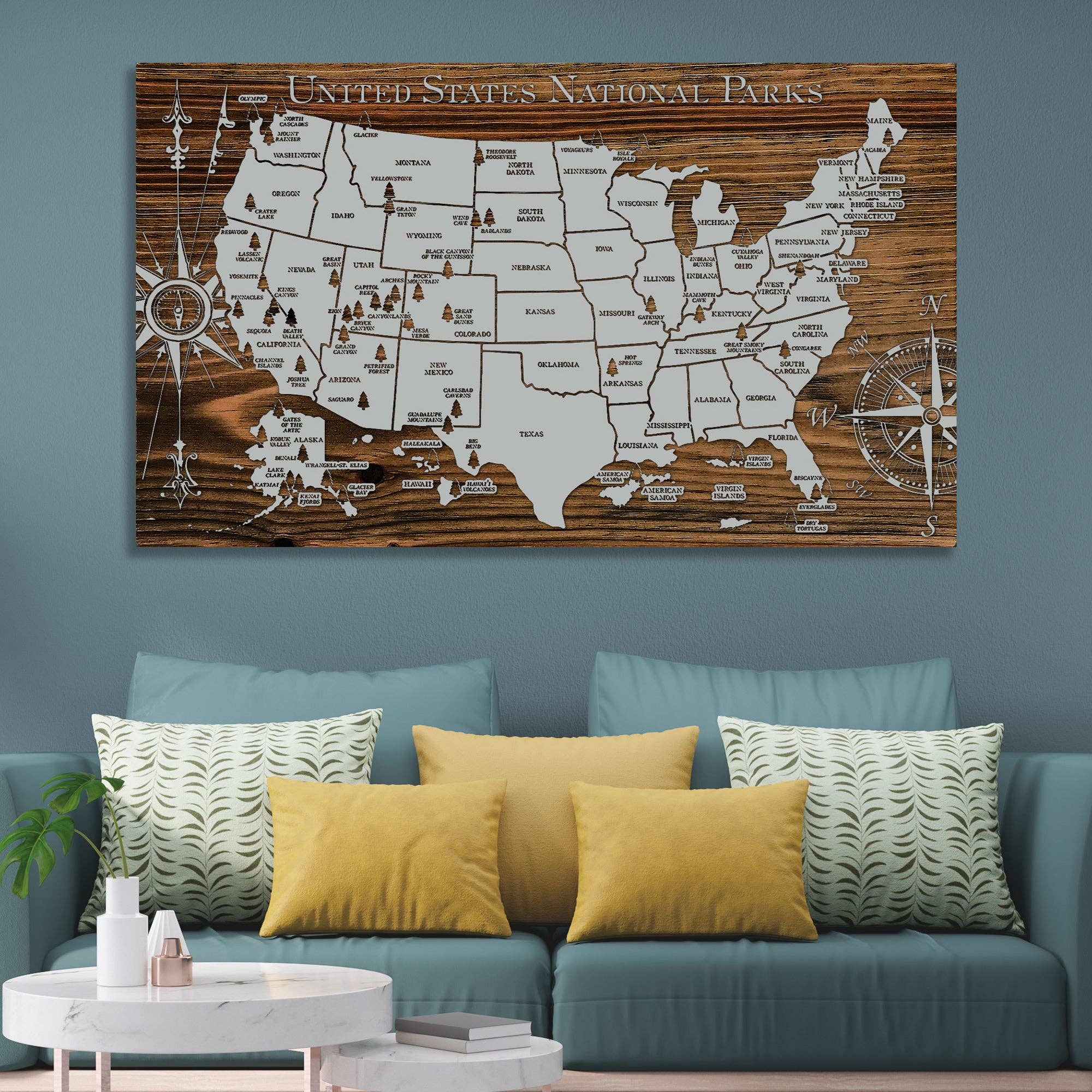 Ces cadres magnétiques en bois de teck facilitent l'accrochage de vos cartes et vous permettent de gratter votre carte sans la sortir d'un cadre. Le cadre de 19" s'adaptera à n'importe laquelle de nos cartes américaines de 12 x 18 avec un demi-pouce de porte-à-faux de chaque côté. Le cadre de 17 po s'adaptera à nos affiches de 16 x 20 pour les parcs nationaux. * Les couleurs peuvent varier dans les cadres, mais tous sont en bois de teck massif avec une teinture moyenne légère.