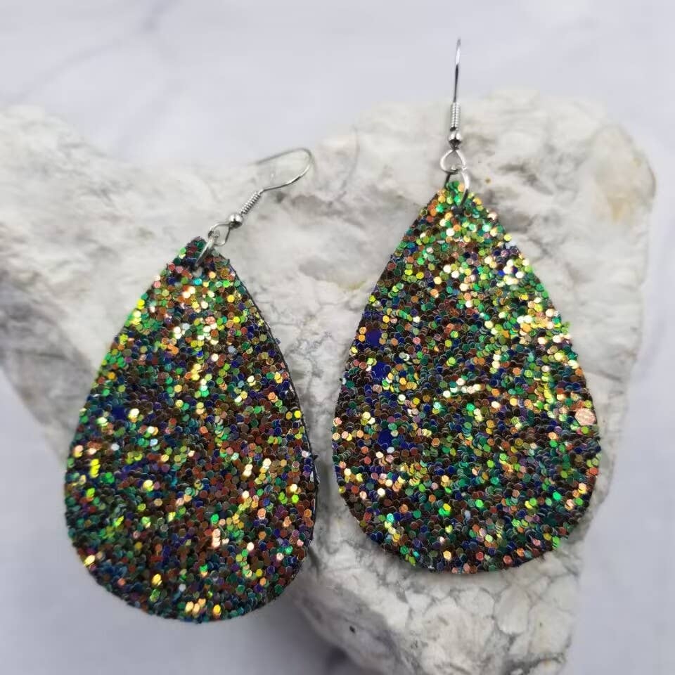 Paillettes collées sur cuir véritable et breloque en métal doré. Crochet en acier inoxydable. Il mesure environ 2 pouces à partir du crochet.