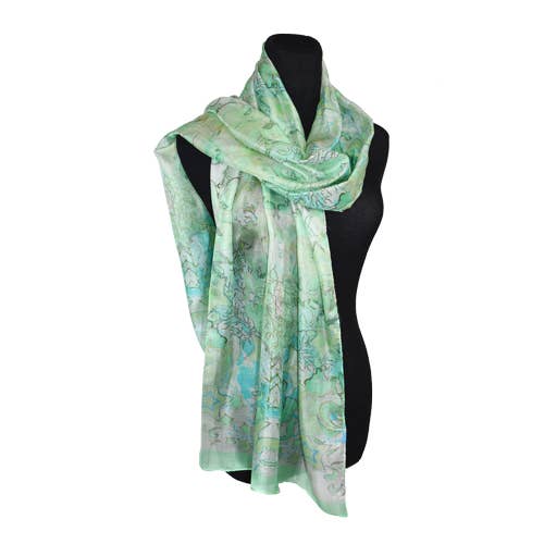 100% soie satinée, double couture et ourlet pour une longue durée de vie, dessins en édition limitée issus de l'art original créé par Neena Jhaveri. Couleurs vives et vives. Chaque écharpe est conçue pour de multiples occasions - des réunions informelles aux événements formels. Chaque écharpe permet au porteur de faire une déclaration. Nettoyage à sec. 10"x70".