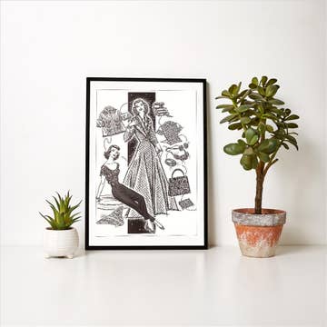 Ajoutez une touche de charme fantaisiste avec une signification plus profonde à votre boutique. Cette impression artistique non encadrée utilise une texture de marqueur esquissée et des détails imparfaits pour donner vie à une belle scène : une femme arrosant son jardin. C'est une pièce d'art mural polyvalente qui évoque la croissance et le soin de soi, parfaite pour les clients à la recherche d'art avec une histoire. Prête pour la vente au détail facile, chaque impression artistique est emballée individuellement sur du papier d'art mat de haute qualité de 230 g/m², 12 mil. Elle est livrée avec un support rigide avec logo pour l'authenticité, scellée dans une pochette protectrice en cellophane recyclée. Stockez-les dans votre boutique en tailles 5x7, 8x10 et 11x14. Les impressions plus grandes de 8x10 et 11x14 ont une bordure de 1 pouce, et le 5x7 a une bordure de 1/2 pouce pour un aspect soigné, prêt à encadrer.