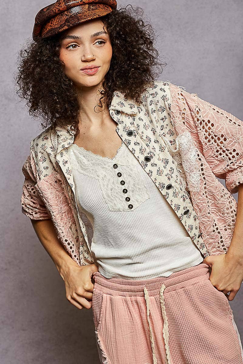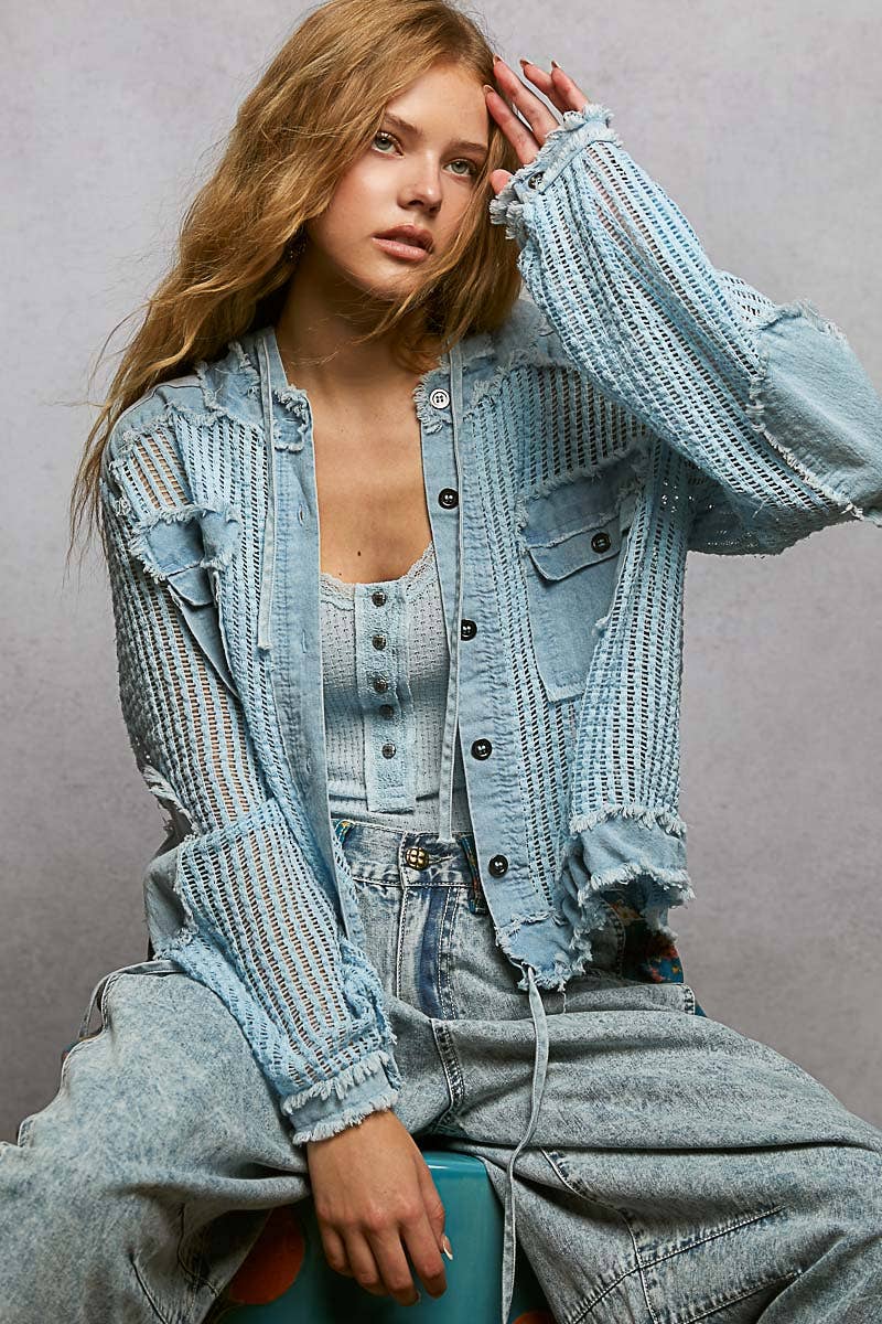 Chemise boutonnée surdimensionnée en crochet uni