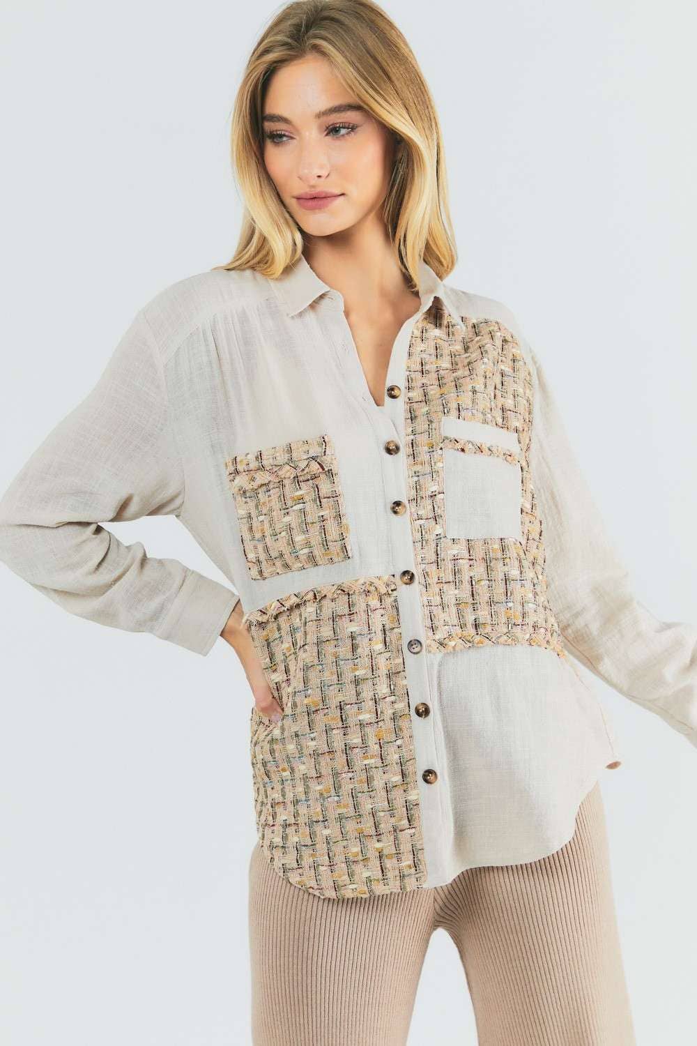 Chemise boutonnée surdimensionnée en crochet uni en vente B2B