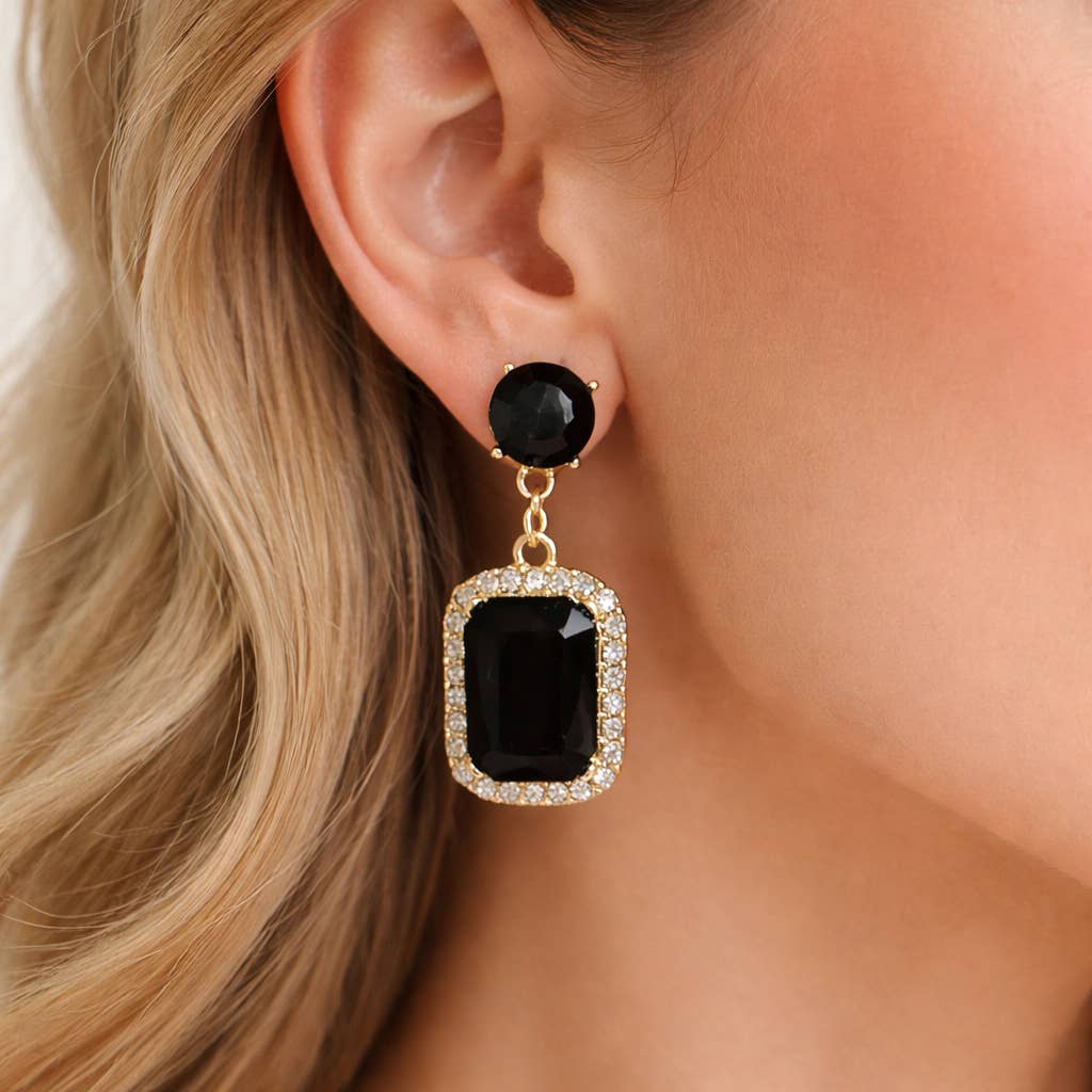 Ajoutez une touche audacieuse de scintillement avec ces gouttes de strass saisissantes. Parfait pour rehausser votre look de fête ou de soirée. DÉTAILS : Plaqué or triple 18K 2,54 cm L x 1,59 cm l