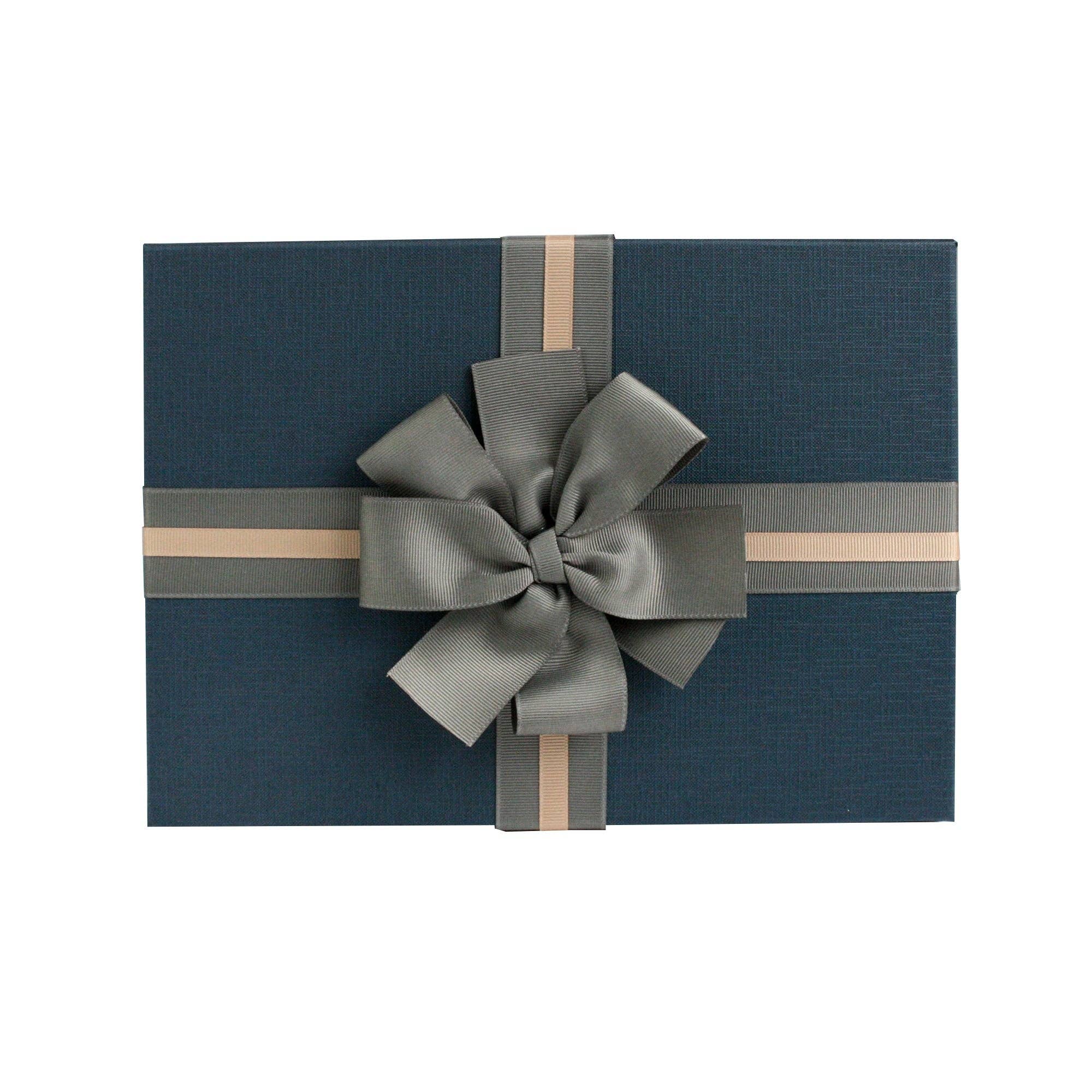 Boîte en kraft brun 31x25,5x8 cm, paquet de 12 avec ruban bleu foncé en vente B2B