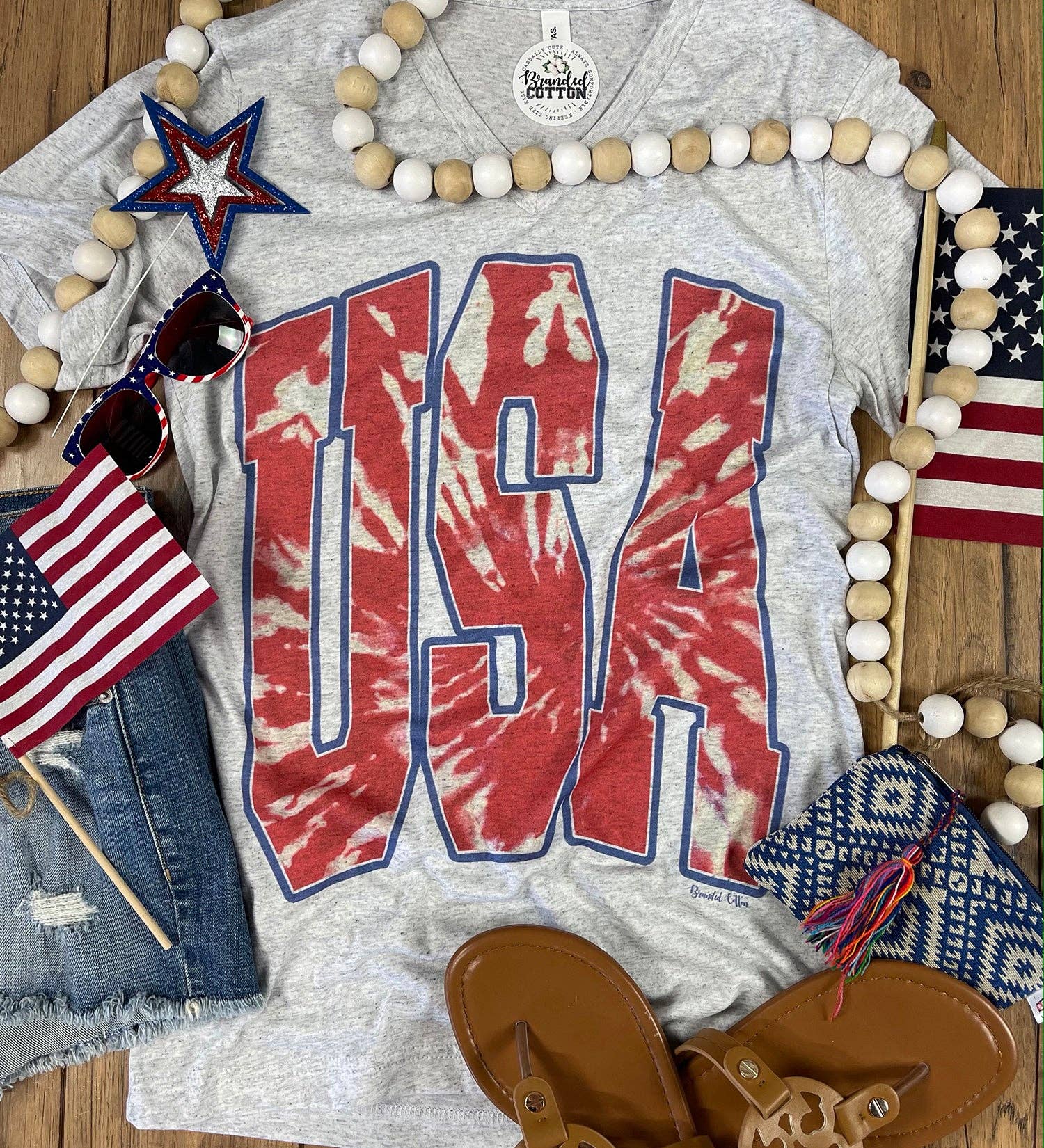Top blanc en faux blanchi Tie Dye du 4 juillet en vente B2B