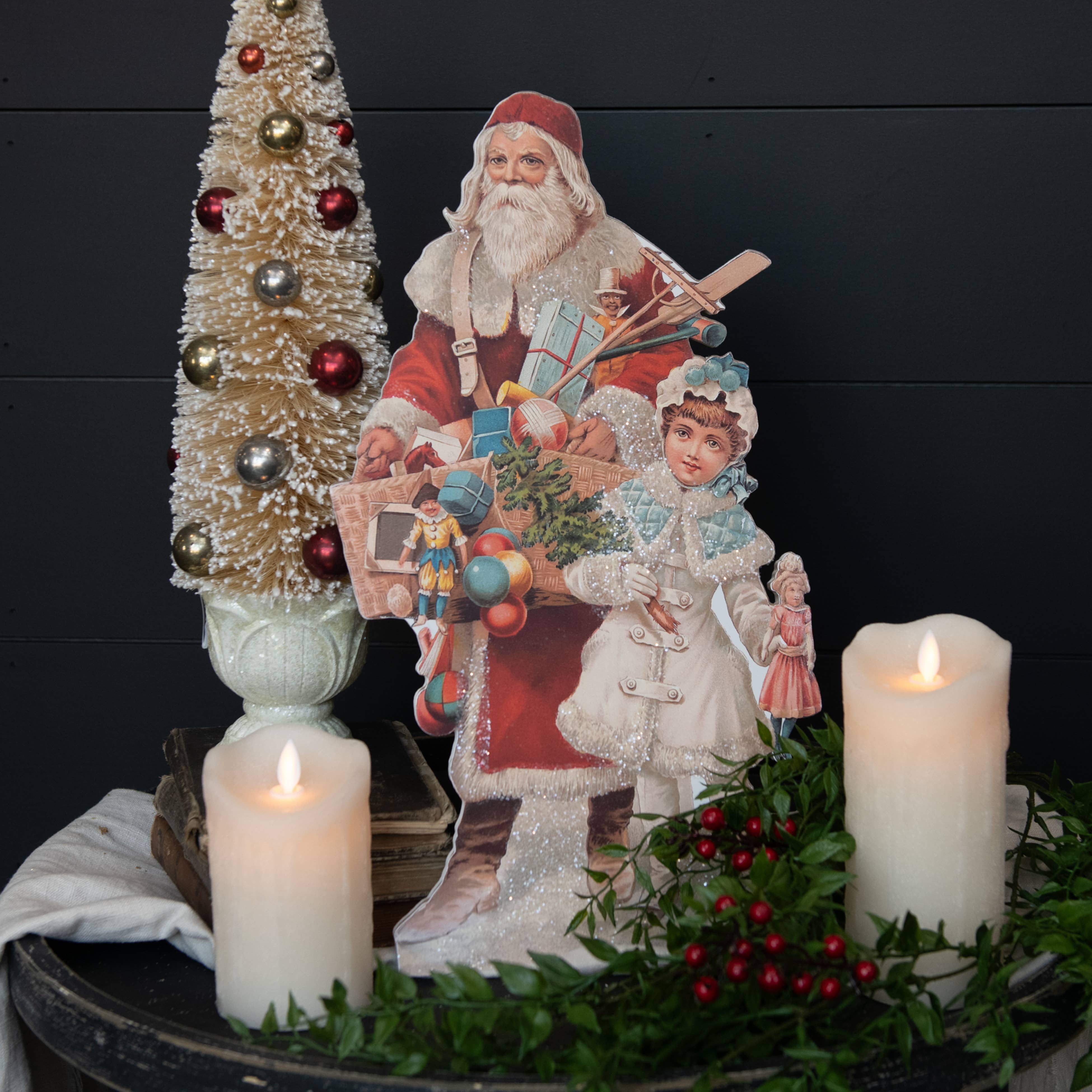 * Œuvre © Greg & Company, LLC. * 8" x 6" * Dos à chevalet * Technologie fibre optique/LED * Minuterie automatique : 6 HRS allumées, 18 HRS éteintes. * Nécessite des piles AA, non incluses. * Fabriqué en Chine À propos de l'art : Apportez le charme réconfortant de la saison des fêtes dans votre maison avec cette magnifique toile de table lumineuse 8x6. Présentant une voiture familiale rouge nostalgique avec des panneaux en bois, un sapin de Noël fraîchement coupé est solidement attaché sur le toit, tandis qu'un petit garçon et son ami à quatre pattes attendent avec impatience que grand-père termine le travail. La scène se déroule devant un vieux magasin général, avec une belle couronne ornant l'avant-toit du bâtiment. Les environs enneigés ajoutent à l'atmosphère enchanteresse, faisant de cette toile un ajout idyllique à votre décoration de fête. Liens de l'artiste Produits Greg Giordano - Glow Decor Greg & Company, LLC. – Art & Art Licensing (greggiordanoart.com) Facebook.com/GregandCompany