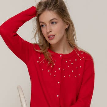 Découvrez notre cardigan de vacances parfait, orné de délicates perles tricotées pour une touche raffinée et festive. Ce cardigan ouvert pour femmes est agrémenté de perles délicates, choisies à la main, qui ajoutent une subtile brillance sans surcharger le look. Conçu pour être d'une polyvalence sans effort, il se superpose magnifiquement sur une robe pour les rassemblements de vacances ou se marie facilement avec un jean pour une tenue quotidienne élégante. Un style de pull en perles intemporel qui apporte chaleur, texture et glamour discret aux garde-robes d'automne et de vacances. Matière : 100 % acrylique Longueur : 23" Largeur : 21"