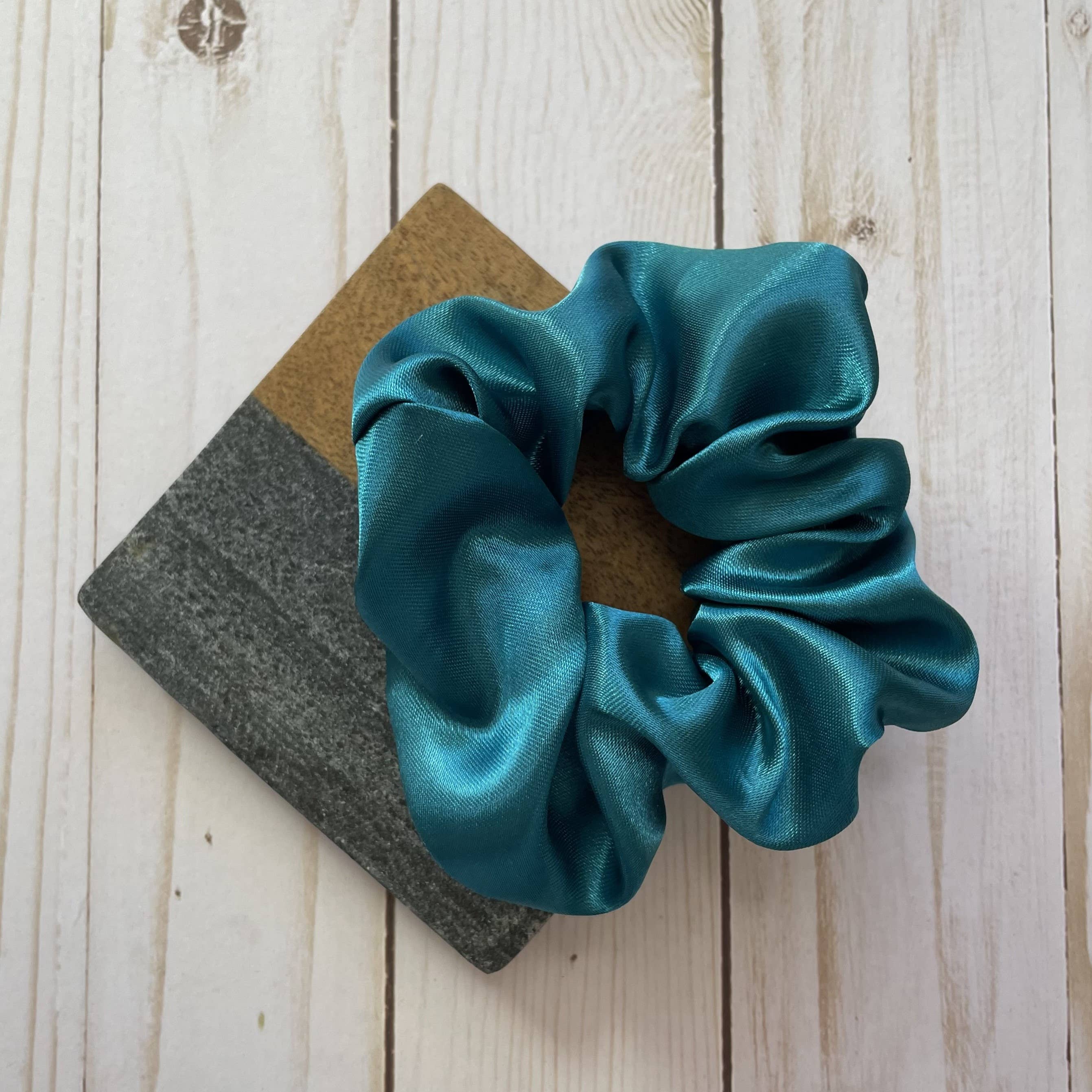 Chouchou fait main en satin bleu sarcelle