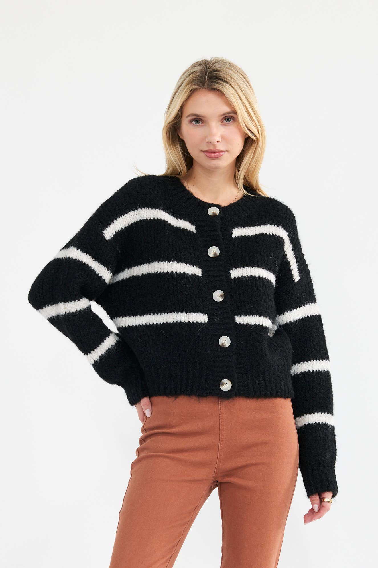 11310-Pull en maille douce légèrement raccourci uni en vente B2B