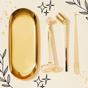 Prenez soin de vos bougies avec style grâce à un kit d'entretien de bougies doré et glamour. Ces outils coupent efficacement les mèches et éliminent la fumée lors de l'extinction des flammes. Comprend 1 coupe-mèche, 1 éteignoir à bougie, 1 plonge-mèche et 1 plateau à bougie.