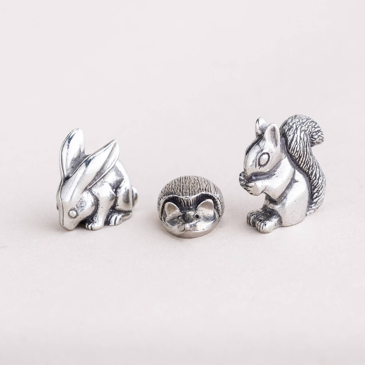 Cet ensemble exquis de miniatures en étain présente trois chevaux en argent élégamment façonnés, chacun mettant en valeur des détails complexes et une finition polie. Placées sur un fond bleu saisissant, ces miniatures sont parfaites pour les collectionneurs et les amateurs de chevaux, ajoutant une touche de sophistication à toute présentation. Idéal comme pièce décorative ou comme cadeau attentionné, cet ensemble capture la grâce et la beauté de ces animaux majestueux. Livré dans une belle pochette en velours de 3"" x 4"". Chaque sculpture mesure environ 1,5"" de haut. Fait main près de la mer ! 10 % des bénéfices financent des organisations caritatives.