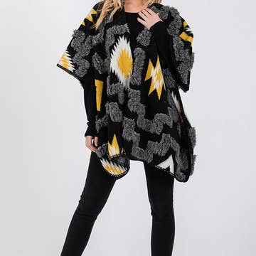 Ruana polaire réversible à motif pied-de-poule Matière : 100 % polyester