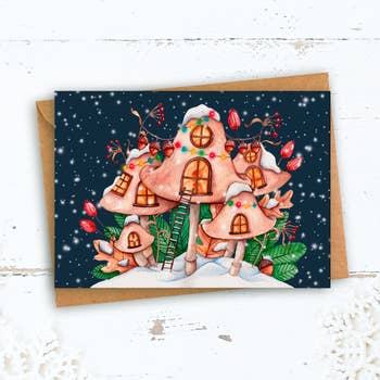 Heure magique à New York pendant Noël | Skyline of Gingerbread Sky Scrappers carte de noël - Imprimé sur papier de 110 lb (papier cartonné). - Carte vierge. - 4,25 X 5,5" (taille A2) - Alternativement, nous proposons également 5 X 7" (taille A7). - Livré avec une enveloppe assortie à l'intérieur d'un étui individuel en plastique/sac pour violoncelle refermable. - Créé à partir du dessin original à l'aide d'aquarelle, crayons d'aquarelle et d'encre et imprimé sur du papier cartonné. - Pour la personnalisation s'il vous plaît contactez-nous. - Fabriqué à New York.