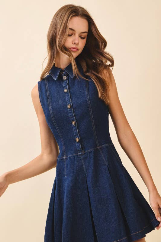 Cette robe en jean élégante présente des bretelles à nœud charmantes qui ajoutent une touche ludique à son design. La robe de printemps/été a un design plissé au niveau du buste créant un look élégant, stylé et chic. - Encolure carrée - Bretelles à nœud - Fermeture éclair au dos - Jupe évasée