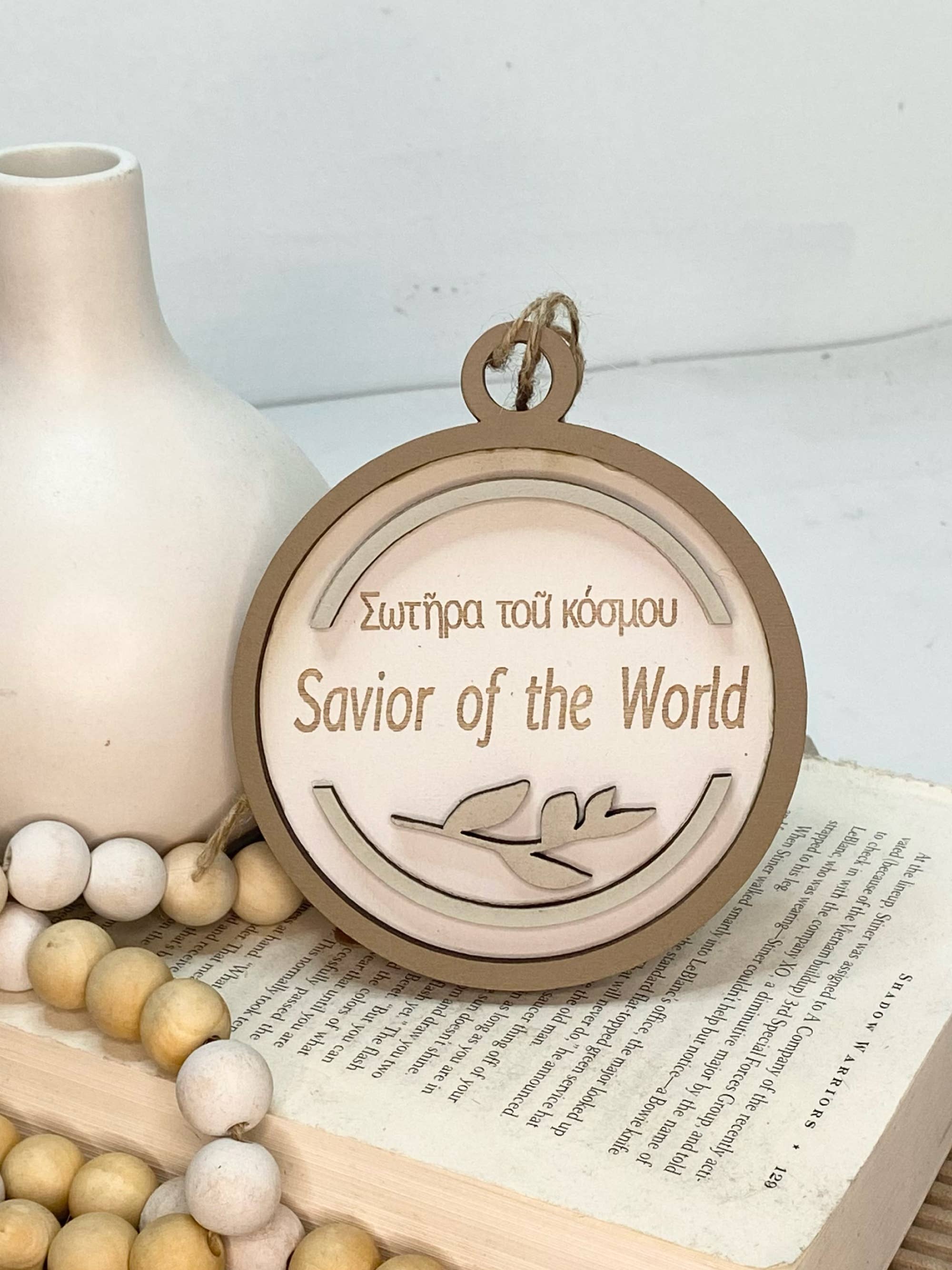 Nom de Jésus - Lumière du monde Cet ornement fait partie de notre collection comprenant 24 noms de Jésus. Au verso de l'ornement, vous trouverez le verset complet où Jésus est désigné comme la Lumière du monde. Jean 8:12 Quand Jésus parla de nouveau au peuple, il dit : « Je suis la lumière du monde. Celui qui me suit ne marchera jamais dans les ténèbres, mais aura la lumière de la vie. » La première ligne correspond à l'orthographe hébraïque ou grecque du nom surligné. Parfait pour décorer un sapin, une boîte-cadeau, une couronne ou toute autre scène de Noël, cet ornement ajoute une touche de signification et de beauté. Fabriquée à partir de bouleau de 1/4 po et méticuleusement peinte à la main, chaque pièce est créée avec précision à l'aide de techniques de gravure et de découpe au laser pour des détails inégalés. Fabriqué à la main par nos soins, une équipe de mari et femme, cet ornement témoigne de notre dévouement à un artisanat de qualité.