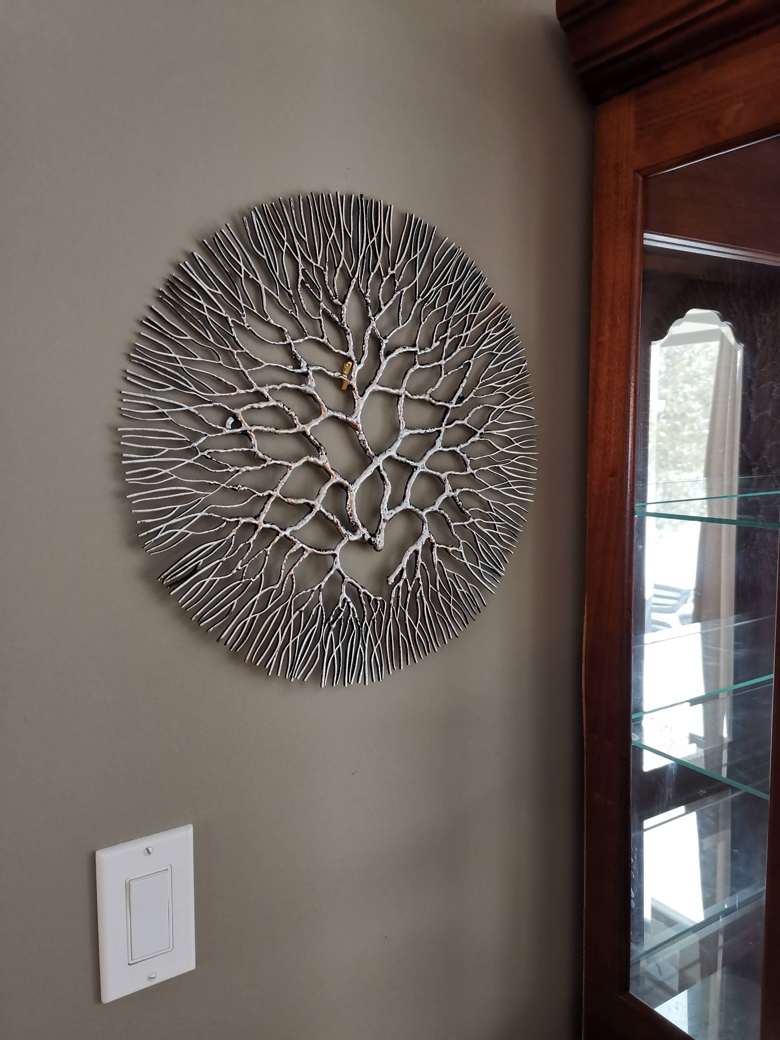 Œuvre d'art originale à fixer au mur de la forêt d'hiver (argent)