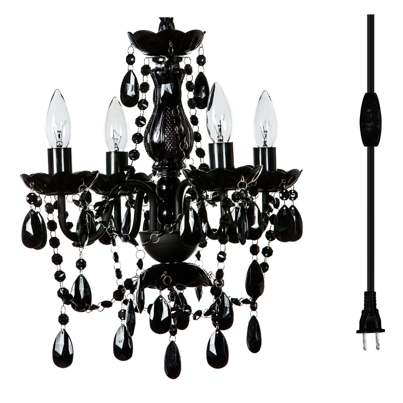 Notre lustre enfichable certifié UL peut être accroché n'importe où sans besoin de boîte de jonction au plafond. Ce lustre gitan en cristaux acryliques ajoute une touche de design haut et de classe baroque à n'importe quel intérieur. Un délicieux mélange de cristaux, perles et swag ! Utilise 3 x 40 W - Ampoules de lustre E12 (non incluses), H17" x L 12" avec cordon de 16 pieds, 4lb Les bras se replient à plat pendant l'expédition pour économiser le matériel et les coûts de transport et réduire le risque de dommages, il suffit de déplier, de connecter quelques perles, et il est prêt à être accroché !