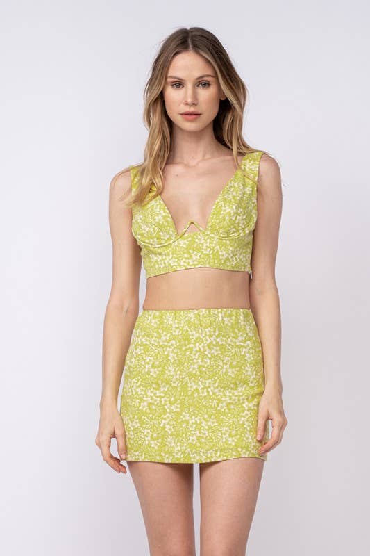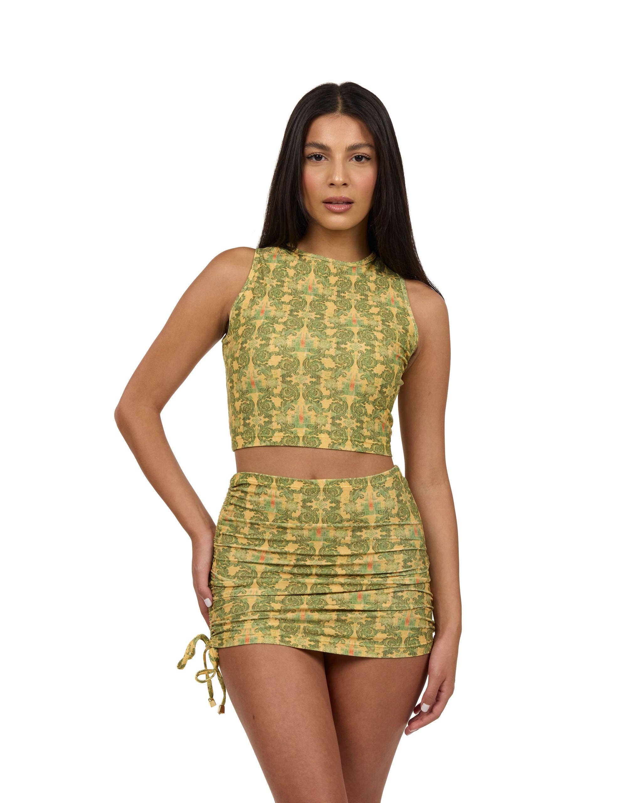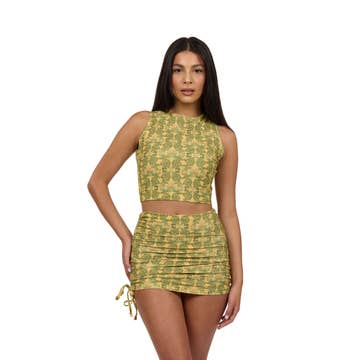 Ensemble débardeur froncé en maille Swirl et mini-jupe taille basse, nouveau en vente B2B