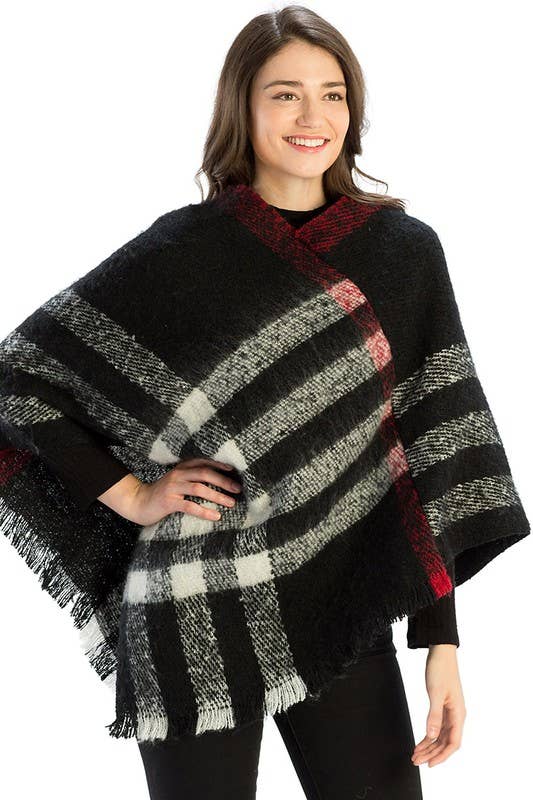 Poncho à col roulé à motif écossais et effet vieilli en vente B2B