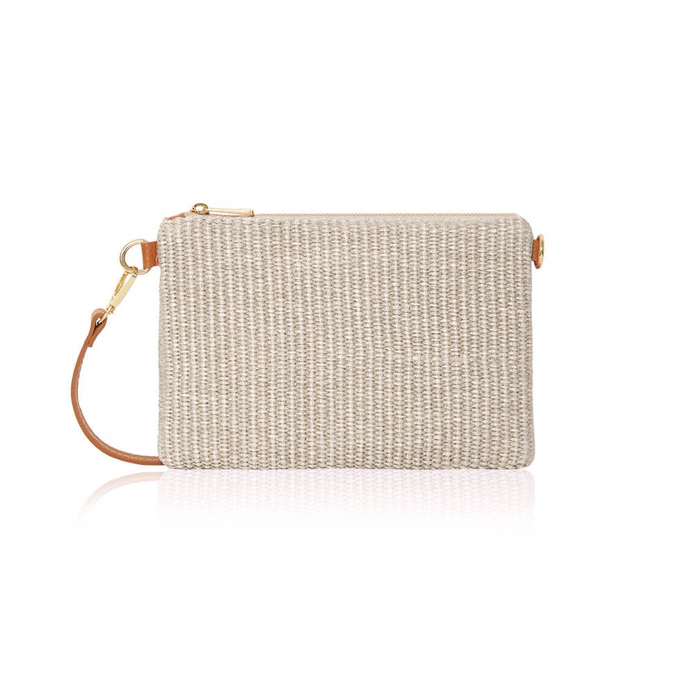 Sac bandoulière en raphia italien et cuir avec poche pour téléphone en vente B2B