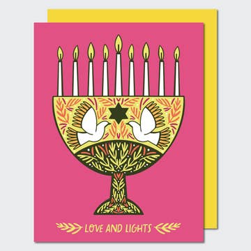 Carte de vœux en letterpress créée à partir d'une illustration originale. Imprimée à Acton, Massachusetts et accompagnée d'une enveloppe assortie. salutation sur le devant : amour & lumière salutation à l'intérieur : vierge format : 10,8 x 14 cm, pliée (A2) impression : imprimée en letterpress dans notre studio d'Acton, MA papier : couverture certifiée FSC fabriquée à partir de 100 % de déchets post-consommation enveloppe : vert mousse origine : USA réf. : TTH2743 / TTH2743BOX
