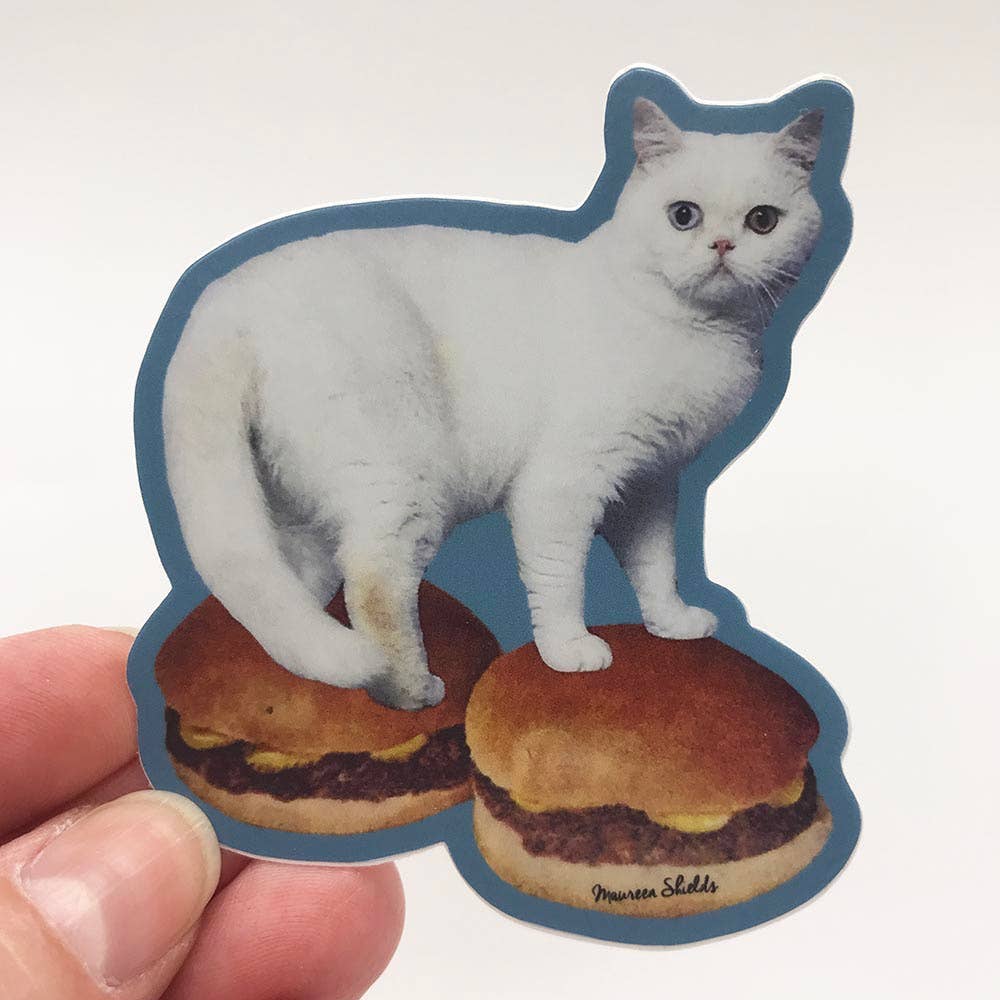 Autocollant découpe forme holographique Chat-burger par Toiletpaper en vente B2B