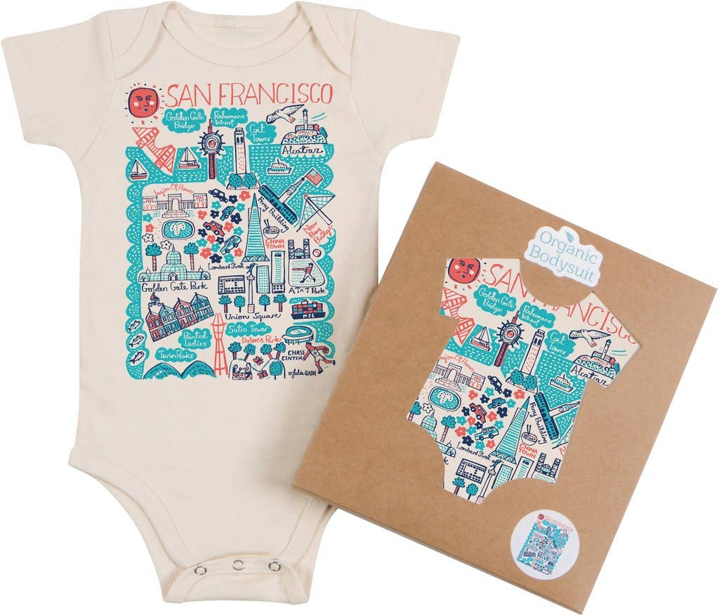 Julia Gash est une entrepreneure créative et une artiste britannique passionnée par l'impression et les cartes. Elle crée des illustrations dessinées à la main au pinceau et à l'encre et collabore avec des détaillants et des licenciés du monde entier pour créer des cadeaux durables et élégants. Merveilleux Washington... un État côtier qui descend vers le plateau fertile du Columbia sur son côté est, à travers lequel coule le fleuve Columbia, formant la frontière de l'État au sud et dans l'océan Pacifique Nord à l'ouest. Washington est l'État des sommets et des pentes monumentaux sur lesquels poussent des millions de sapins. Il n'est donc pas surprenant qu'on l'appelle Evergreen State. Le 100 % coton biologique le plus doux Teintures écologiques à base d'eau à faible impact Boutons-pression sans nickel Lavage et séchage en machine Non destiné aux vêtements de nuit Emballage de boîte-cadeau écologique en option Fabriqué aux États-Unis