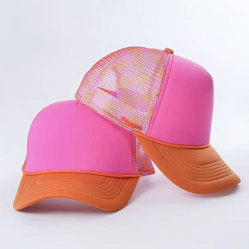 Casquette de camionneur en mousse rose tendre de Vibes Hat Company. Les camionneurs ont une face avant en mousse, une face arrière en maille et un boîtier ajustable à pression.