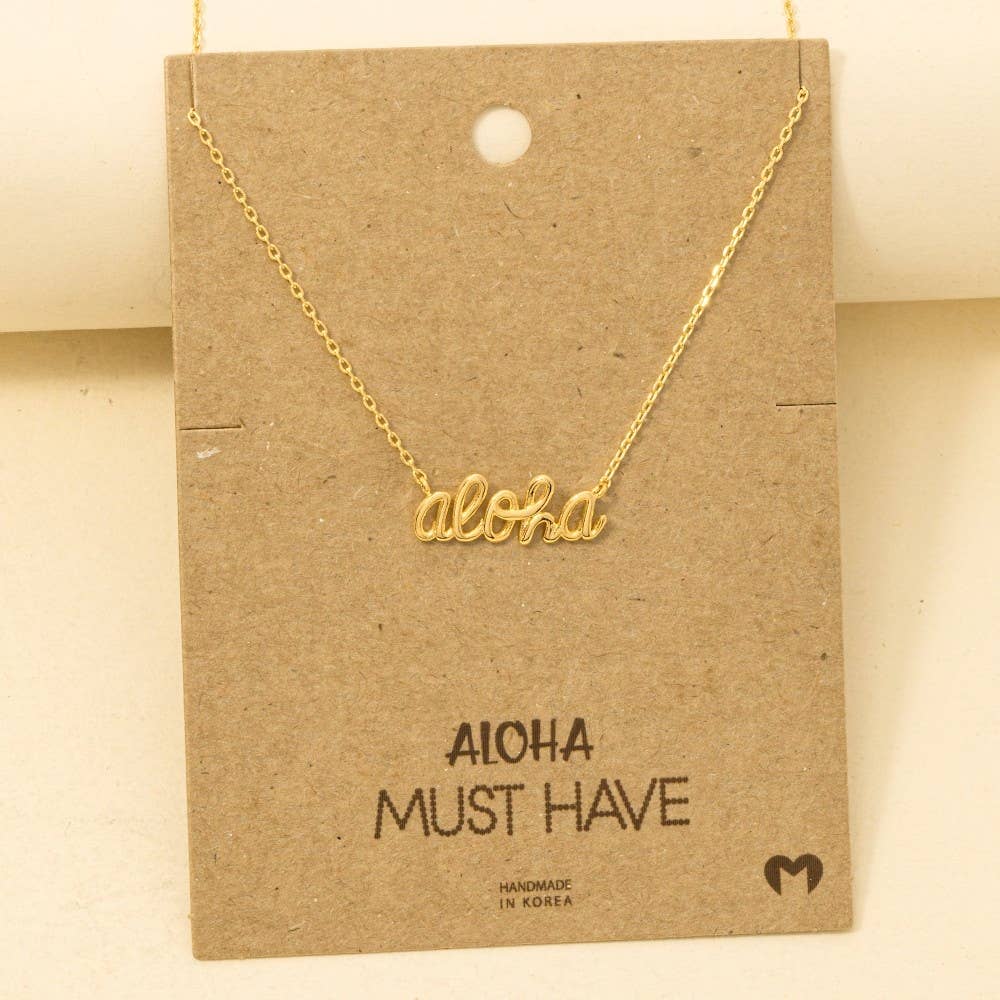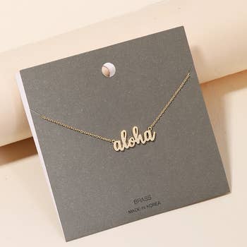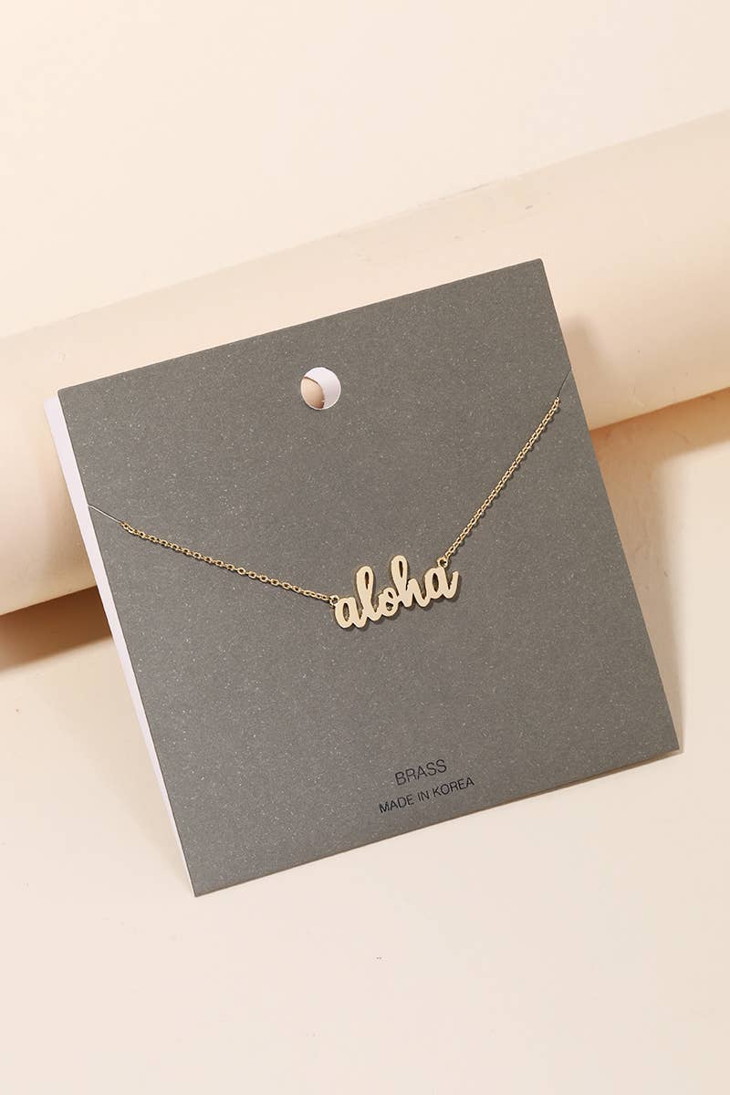 Ce collier tendance présente un style unique de collier avec une écriture manuscrite "aloha". Célébrez l'art de l'accessoirisation avec cette pièce qui encapsule sans effort les tendances modernes. Ce collier tendance mesure environ (pouces) : L : 16 FABRIQUÉ EN CORÉE 100 % LAITON
