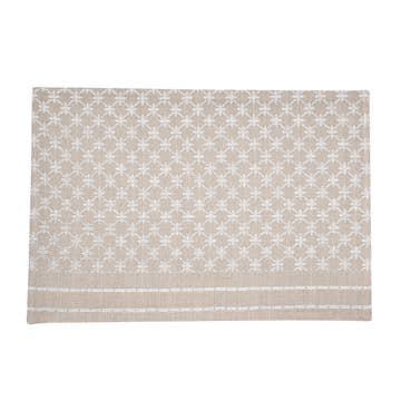 Vendu par 4 pièces ; Prix par pièce Description : Ces magnifiques sets de table au motif flocon de neige présentent également de petits motifs d'étoiles brillantes qui les rendent tout simplement divins. Les tons chauds apporteront une lueur à votre table. Le chemin de table assorti est également disponible. Saison : Fêtes. Matériau : 80 % Polyester - 20 % Lin Instructions d'entretien : Lavage délicat en machine, séchage à l'air libre