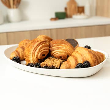 Découvrez notre magnifique assiette rectangulaire en bois d'olivier, un ajout éblouissant à votre collection de vaisselle qui allie harmonieusement beauté naturelle et élégance fonctionnelle. Fabriquée à la main à partir de bois d'olivier de première qualité, chaque assiette est un chef-d'œuvre unique, mettant en valeur les motifs de grain riches et complexes ainsi que les tons chauds caractéristiques de ce bois exceptionnel. Conçue avec précision et soin, la surface lisse de l'assiette en bois d'olivier offre un magnifique fond pour vos chefs-d'œuvre culinaires, tandis que les variations naturelles du grain du bois garantissent que chaque assiette est aussi unique que les repas que vous y servez. Élevez votre expérience culinaire et impressionnez vos invités avec l'élégance intemporelle de notre assiette rectangulaire en bois d'olivier. Qu'elle soit utilisée comme plat de service ou comme accent décoratif, cette assiette est sûre de devenir un élément central précieux dans votre maison. Petit : 22,6 cm x 8,9 cm x 2 cm Grand : 30 cm x 14,7 cm x 2,5 cm