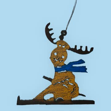 Ornement skieur. 4,5 H x 4,5 W Cet ornement est fabriqué avec de l'acier de calibre 18. La couleur du processus de rouille naturelle peut varier légèrement, Made In Prescott Arizona