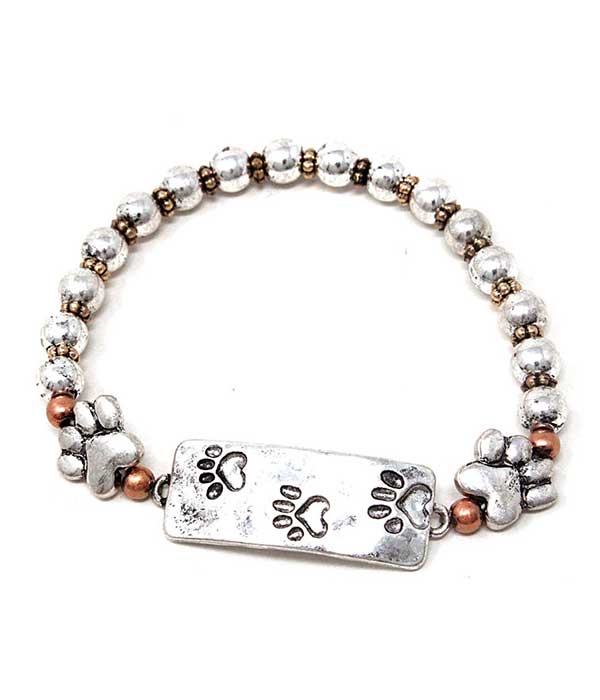Bracelet à breloques « Paw Prints on Your Heart » pour chien/chat