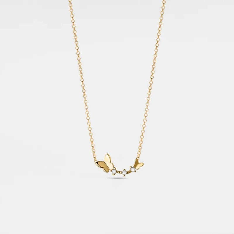 Collier pendentif essaim de papillons plaqué or 18 carats