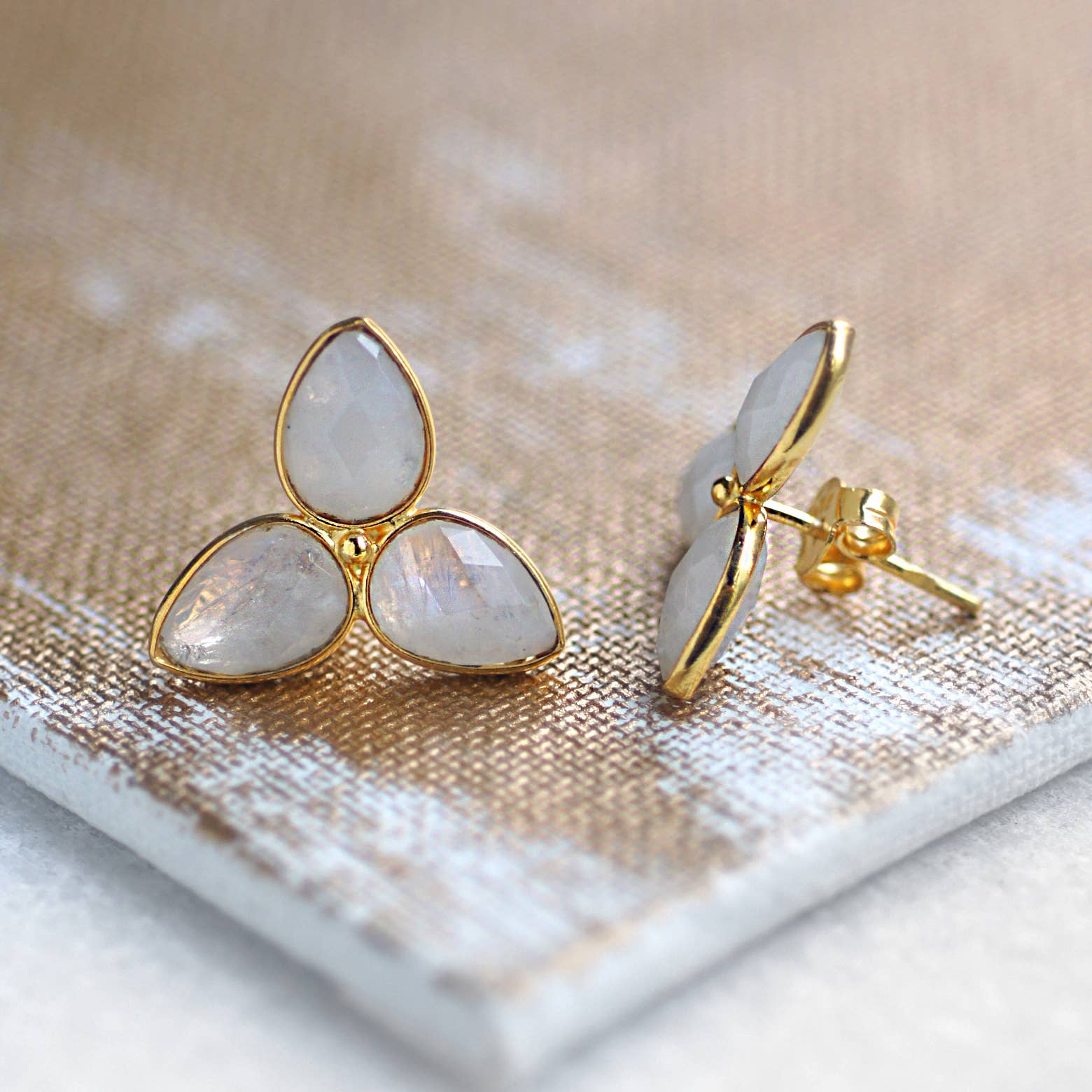 Boucles d'oreilles en or vermeil Coussin Pierre de lune arc-en-ciel en vente B2B
