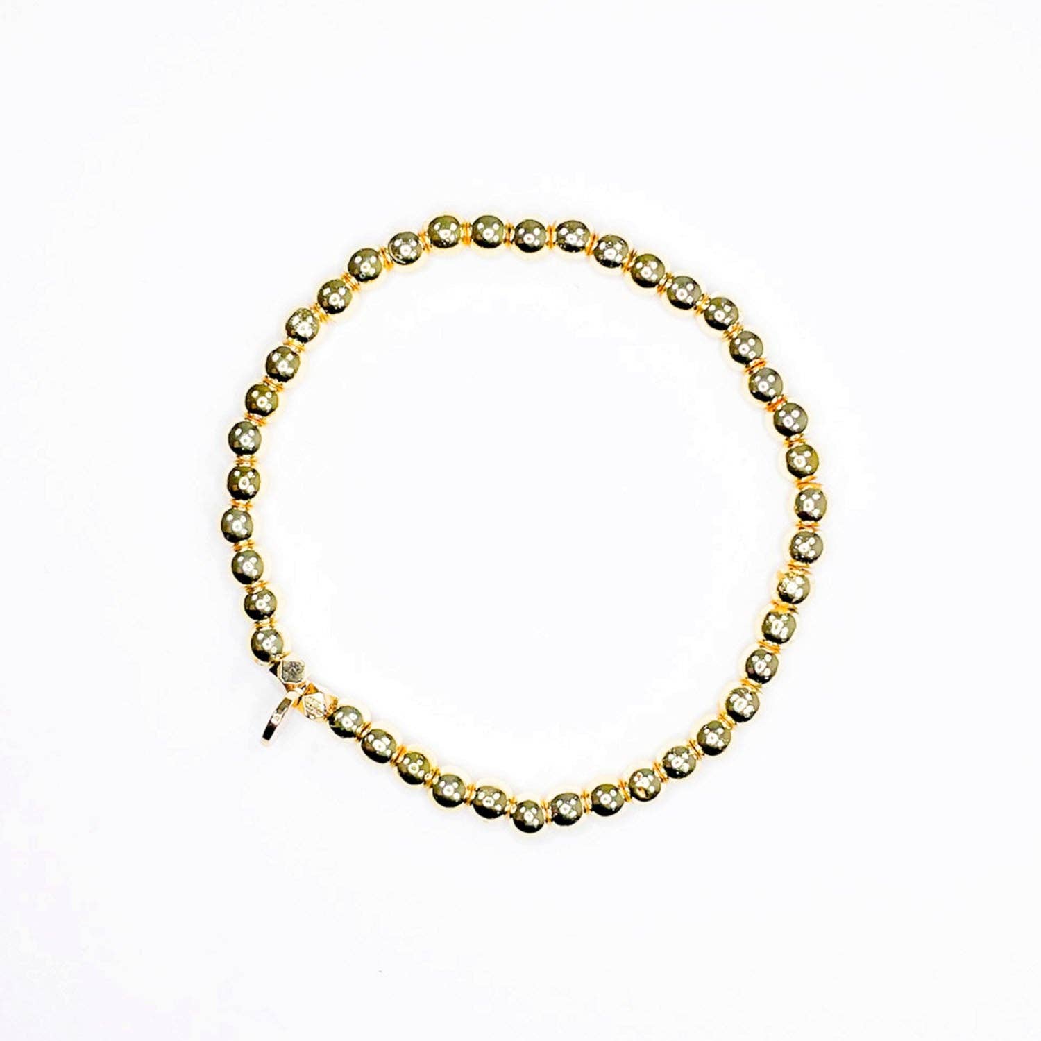 OR. Un classique intemporel qui élève chaque pile. Ce bracelet est fabriqué avec de magnifiques perles plaquées or PVD polies sur de l'acier inoxydable, conçu pour être porté au quotidien et pour un style sans effort. Nous aimons qu'il offre un look or classique et élégant tout en étant suffisamment durable pour vous suivre - aucune occasion spéciale requise. Chaque bracelet peut être porté seul ou empilé avec nos autres bracelets en code Morse pour un look amusant et significatif. Détails : • Longueur : 6,75" | S'étire jusqu'à 7,5" • Fait à la main avec amour en Thaïlande • Fabriqué avec un placage or PVD résistant à l'eau, à la transpiration et au ternissement sur de l'acier inoxydable