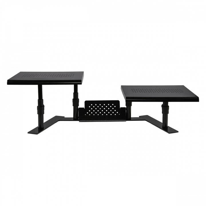 Notre bureau à hauteur réglable Tri-Elite Kangaroo est présenté avec (3) moniteurs montés VESA. Les supports sont entièrement réglables, y compris Pan, Tilt et Portrait to Landscape et les charnières offrent un panoramique à 180 degrés. La surface de travail qui contient votre clavier et votre souris est réglable verticalement de 16,5 po et les moniteurs sont réglables séparément de 6,5 po supplémentaires pour vous offrir un double avantage ergonomique maximal. La surface de travail peut être réglée et surélevée à la hauteur exacte à chaque fois grâce à la fonction de boulon d'arrêt. Disponible en finition Putty, Black, Cherry et Light Maple. * Capable de supporter 3 moniteurs montés côte à côte * La conception de la charnière prend en charge 180 degrés de panoramique * La surface de travail et le moniteur s'ajustent séparément pour vous offrir une double ergonomie * La surface de travail de notre bureau à hauteur réglable peut être surélevée exactement au même endroit en utilisant notre fonction « boulon d'arrêt » * La surface de travail principale mesure 28 « de large par 24 » de profondeur * La surface de travail principale est réglable 16.