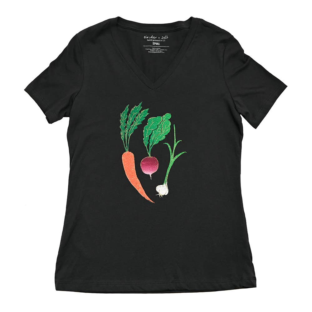 Couleur de la chemise : rouge (un rouge rosé). Couleurs de l'encre : prune profond et vert foncé. 55 % coton, 45 % polyester. Inspiré par notre amour des légumes-racines et des marchés de producteurs, la modeste betterave rouge reçoit une magnifique transformation Art Nouveau dans notre dernier design. C'est presque trop joli pour être mangé. Imprimé sur un haut en jersey à manches courtes. Ce style confortable a la coupe décontractée d'un haut ample, mais le tissu mi-lourd ultra doux lui confère une sensation luxueuse et une drapé féminine. Le modèle présenté mesure 1,73 m, taille 38 (buste 90 cm), et porte une taille MEDIUM dans ce style. Un style vraiment accommodant pour une variété de types de corps, ce haut spacieux a une coupe similaire à nos populaires t-shirts à manches retroussées. Cependant, comme il a une véritable coupe ample, il taille un peu plus grand. Nous recommandons donc généralement de prendre une taille en dessous. Actuellement disponible en tailles S-XL. En raison de quantités limitées, la taille 2XL est disponible uniquement sur demande.