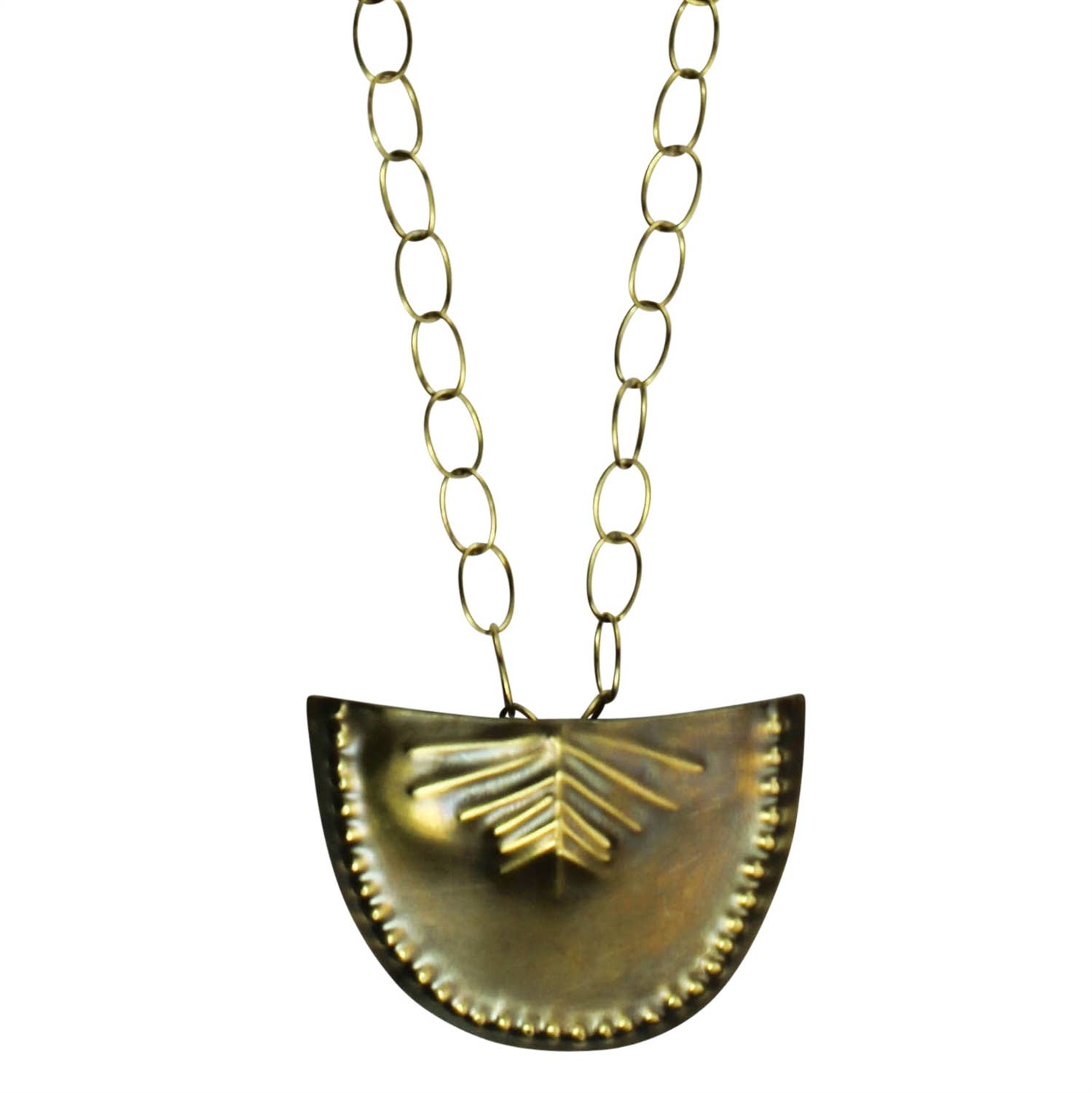 Collier pendentif grandes feuilles plaqué argent antique