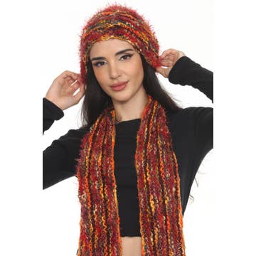Bonnet tricoté à la main en fil composé de laine mérinos et de soie. Doux, chaud et léger, il a été lavé et brossé à la main pour obtenir un effet moelleux et légèrement flou. Il s'agit d'une pièce unique qui ne sera pas réapprovisionnée. Laver à la main à l'eau froide, ne pas tordre, sécher à plat. Pour raviver la texture au fil du temps, utiliser une brosse adaptée au mohair ou une brosse pour animaux munie de fils métalliques sans embouts protecteurs aux extrémités.
