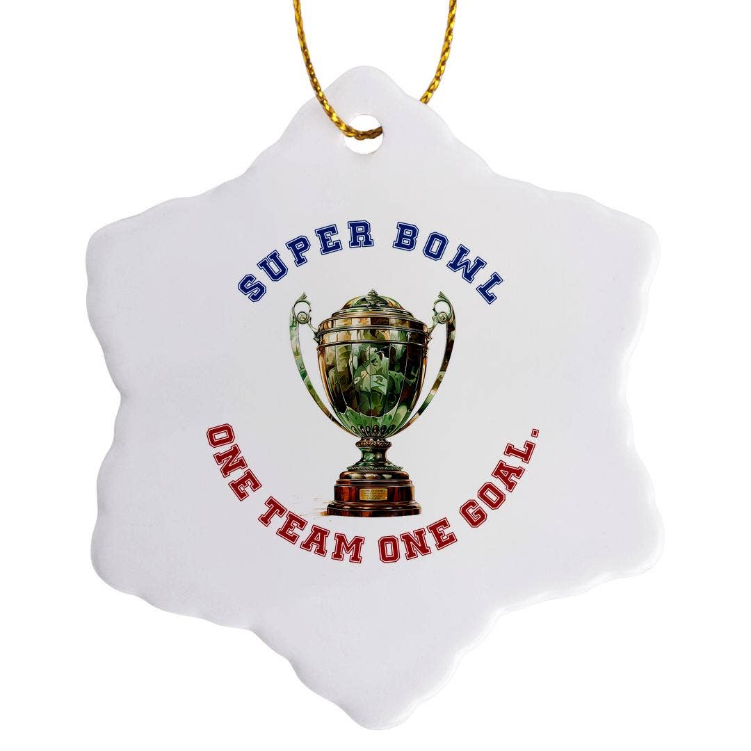 Découvrez la magie du jour de match avec notre décoration de Noël O'er the Fields We Go. Avec le Père Noël et son traîneau survolant le terrain de football de votre équipe NFL préférée, cet ornement unique est l'ajout parfait à la décoration de fête de tout fan de sport.