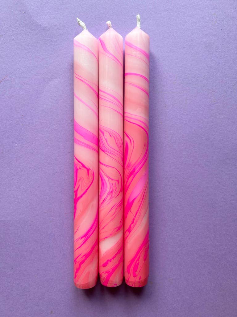 The Colour Emporium présente ce trio de colorants frais composé de délicieuses fines rayures bleues et vertes prêtes à décorer votre table. Ces bougies constituent le cadeau idéal pour un hôte élégant et sont joliment emballées à cet effet. Chaque trio de bougies est trempé à la main dans les collines de Surrey et chaque ensemble est unique. La combinaison de couleurs vives est toujours la même mais le motif peut légèrement varier en raison de la nature artisanale. Profitez de la tendance des bougies colorées et ajoutez de la joie et de l'atmosphère à votre maison. Les bougies mesurent 23 cm x 2,3 cm et ont une extrémité effilée pour s'adapter aux bougeoirs standard.