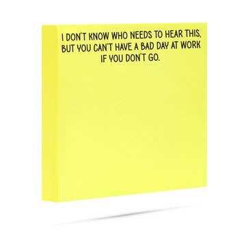 Vos clients adoreront nos adorables notes autocollantes. Des couleurs vives et magnifiques pour vous aider à suivre ces petits rappels. EN PLUS, toutes les notes autocollantes incluent des conseils sur la prise de notes en bonus gratuit. Qui a dit que s'organiser devait être ennuyeux ? Idéal pour noter toutes ces pensées aléatoires, s'inspirer pour créer, brainstormer, ou simplement se souvenir d'une des millions de choses à faire. Le cadeau parfait pour tous nos rockstars de bureau et de télétravail. DÉTAILS : * 50 feuilles * Emballé sur une carte de support * Enveloppé dans du cellophane