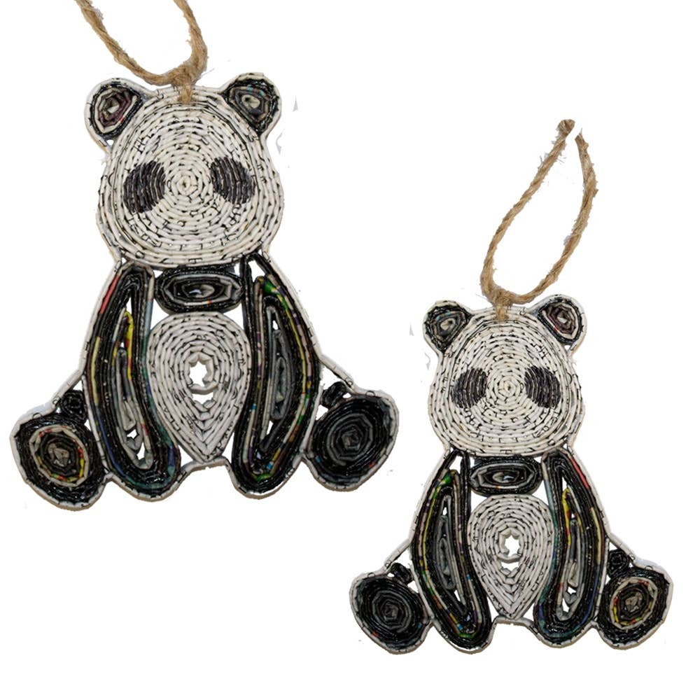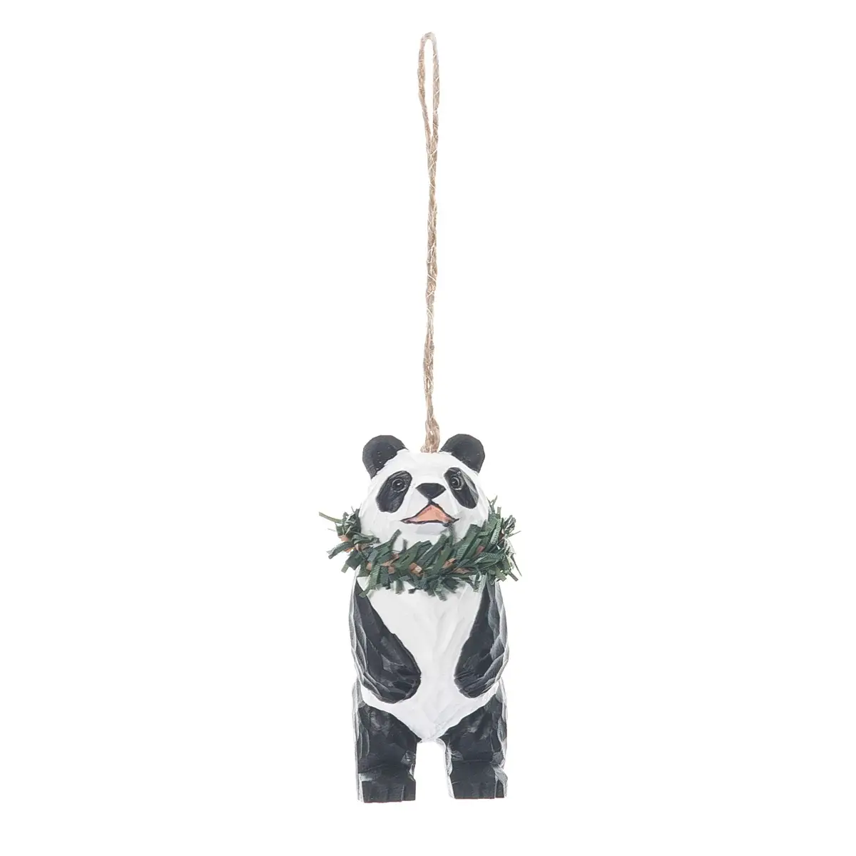 Ornement Ours Panda Apportez une touche de nature sauvage à votre collection avec l'Ornement Ours Panda de Bert Anderson. Mesurant 14 cm de haut (sans compter le crochet), ce panda magnifiquement détaillé capture l'esprit doux et joueur de l'un des animaux les plus aimés de la nature. Chaque pièce est moulée à la main en résine durable à partir de la sculpture originale de Bert Anderson et peinte à la main par des artisans qualifiés pour mettre en valeur des textures réalistes et les marques classiques noir et blanc. Un crochet en corde de jute naturelle ajoute une touche rustique et artisanale, ce qui le rend parfait pour les boutiques de zoo, les parcs animaliers et les détaillants de stations balnéaires. Conçu avec l'art et le détail réaliste qui définissent la Collection Bert Anderson, cet ornement panda est un merveilleux objet de collection ou cadeau pour les amoureux des animaux de tous âges. Ajoutez un symbole de paix et de beauté de la nature à vos étagères — cet ornement ours panda fait main est sûr de charmer clients et collectionneurs.