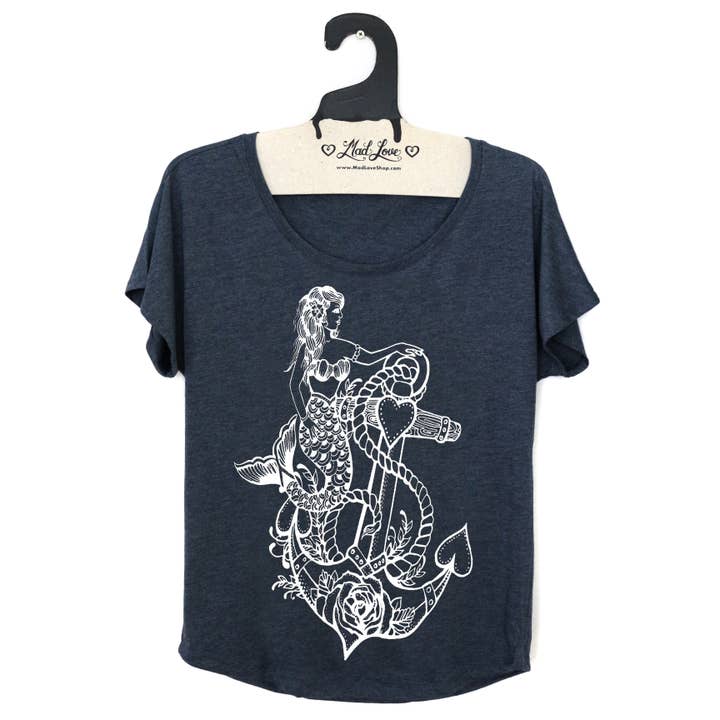 Sweat-shirt léger gris chiné unisexe avec imprimé sirène. Sérigraphié à la main avec de l'encre écologique, manches longues super douces et confortables. Fabriqué sur commande, 3 pièces minimum. Tissu : Polaire éponge française 60 % coton/40 % polyester 5,3 oz. Caractéristiques : Poignets et ceinture Coupe unisexe Manches raglan