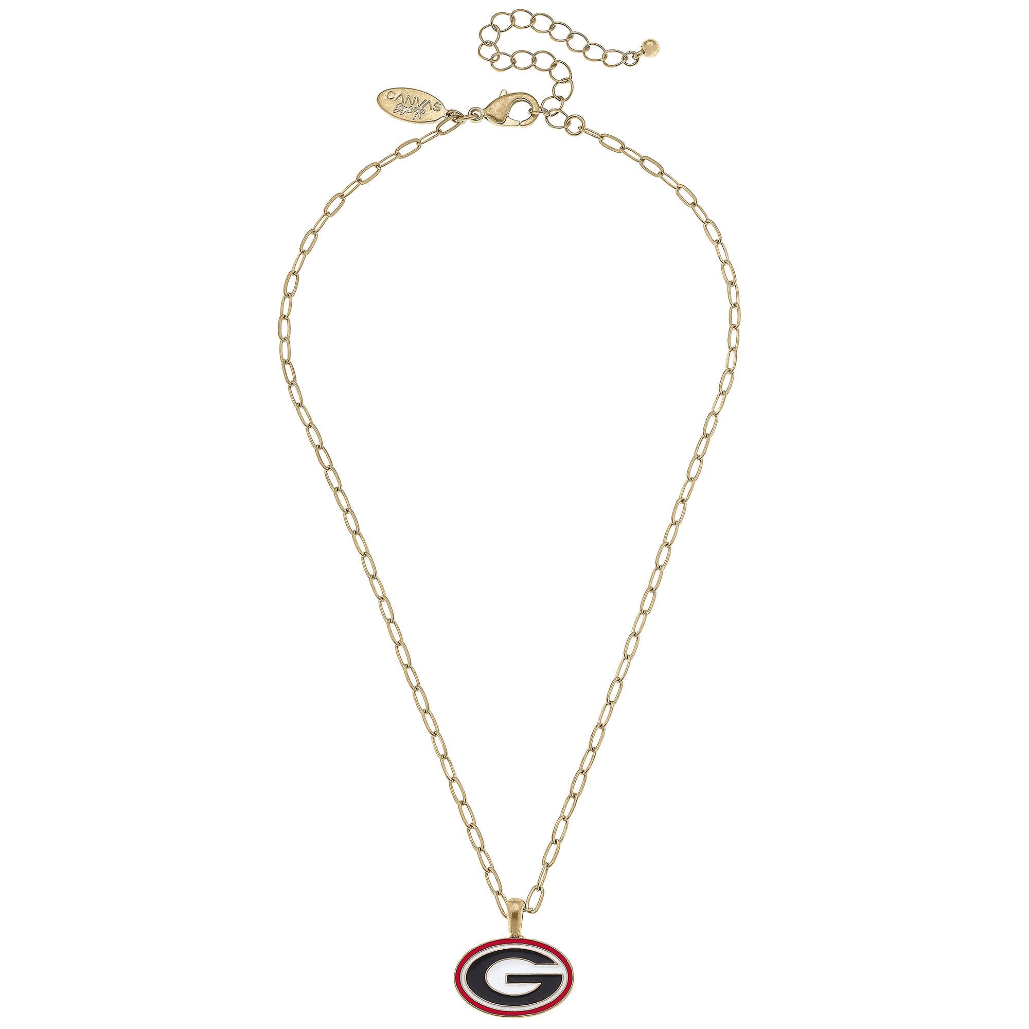 D'une longueur de 18 pouces, ce collier au fini vintage est orné d'un pendentif en bois portant le logo Georgia, d'un fermoir à griffes et d'une rallonge de 3 pouces. Le pendentif mesure environ 1 pouce de diamètre. Il s'agit d'un produit sous licence officielle.