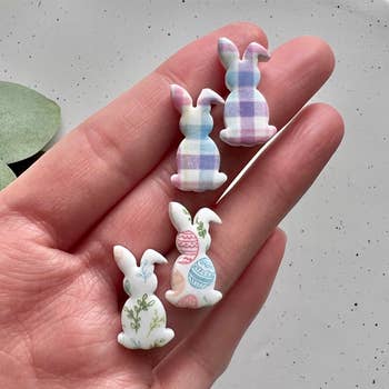 Boucles d'oreilles bouton en tissu lapin de printemps en vente B2B